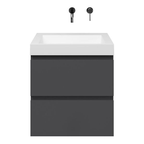 | | Bellanti Gisella/Renzo-q badmeubel 60x46 2 softclose laden antraciet mat greeploos quartz wastafel mat wit zonder kraangaten |