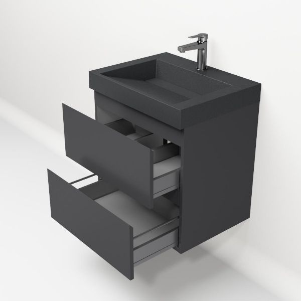 | | Bellanti Gisella/Renzo-q badmeubel 60x46 2 softclose laden antraciet mat greeploos quartz wastafel mat grijs met 1 kraangat |