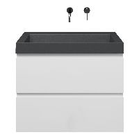 | | Bellanti Gisella/Renzo-q badmeubel 80x46 2 softclose laden wit hoogglans greeploos quartz wastafel mat grijs zonder kraangaten |