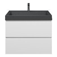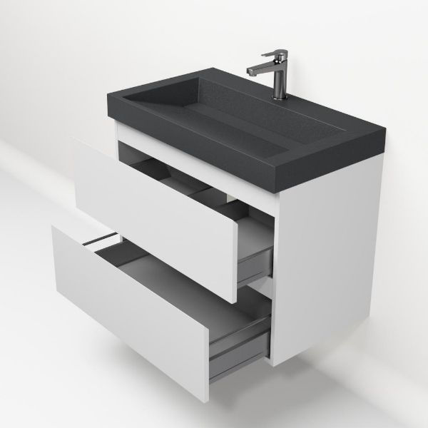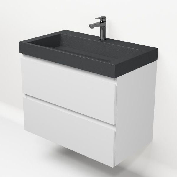 Greeploos badkamermeubel in de kleur wit mat is 80 cm breed. De wastafel is vervaardig in quartz en heeft de kleur grijs mat quartz. Dit badkamermeubel met deze wastafel is leverbaar tussen de 60 cm t/m 140 cm