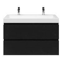 | Bellanti Gisella/Renzo-q badmeubel 100x46 2 softclose laden zwart mat eiken greeploos quartz wastafel mat wit met 2 kraangaten |