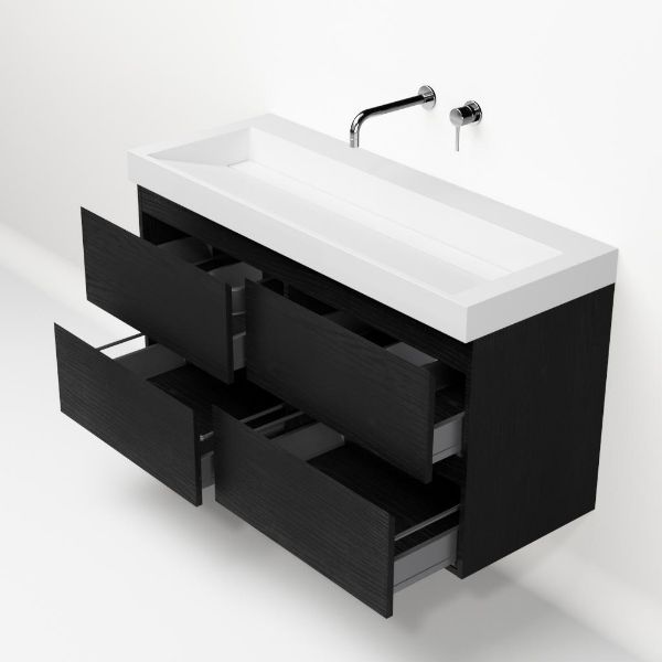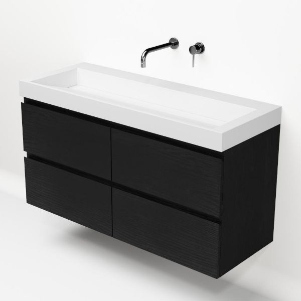 | | Bellanti Gisella/Renzo badmeubel 120x46 4 softclose laden zwart mat eiken greeploos polystone wastafel wit zonder kraangaten |