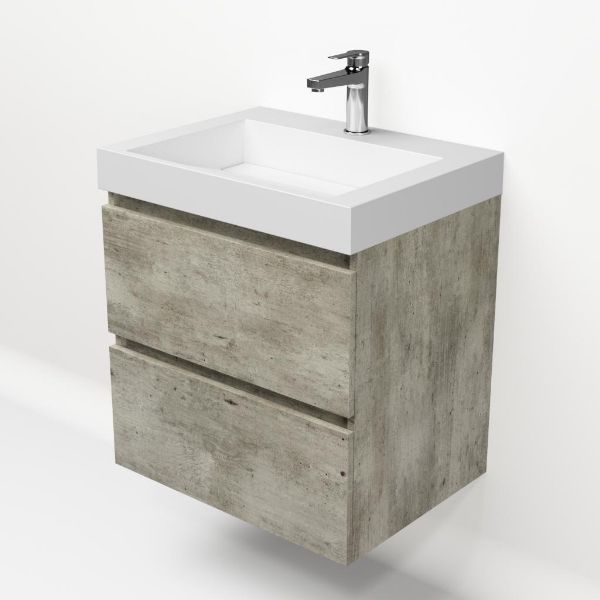 | | Bellanti Elena/Renzo-q badmeubel 60x46 2 softclose laden steigerhout licht grijs greeploos quartz wastafel mat wit met 1 kraangat |