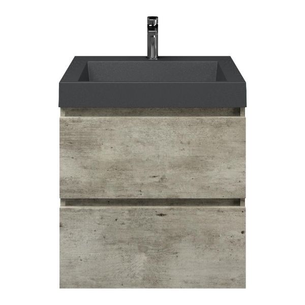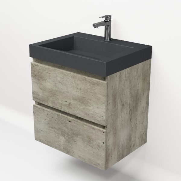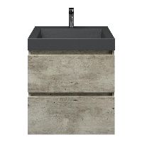 | | Bellanti Elena/Renzo-q badmeubel 60x46 2 softclose laden steigerhout licht grijs greeploos quartz wastafel mat grijs met 1 kraangat |