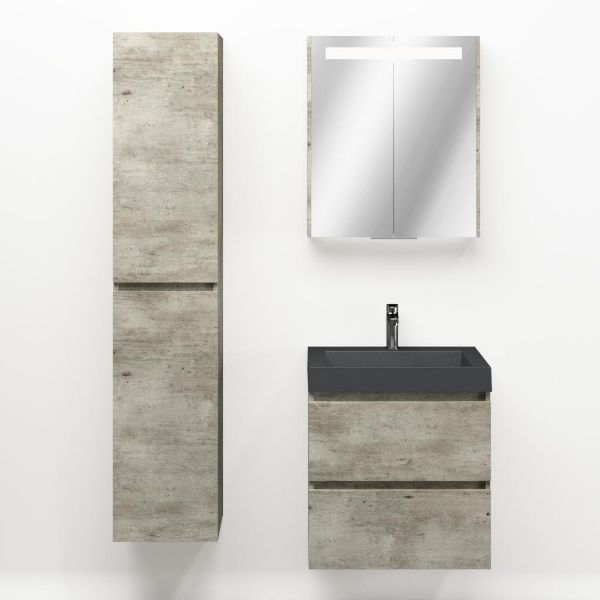 | Bellanti Elena/Renzo-q badmeubel 60x46 2 softclose laden steigerhout licht grijs greeploos quartz wastafel mat grijs met 1 kraangat |