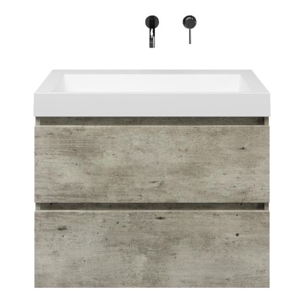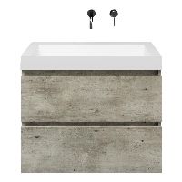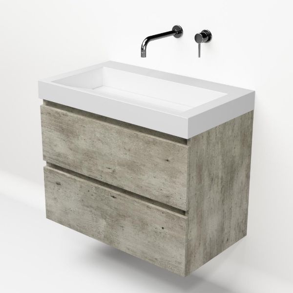 | | Bellanti Elena/Renzo-q badmeubel 80x46 2 softclose laden steigerhout licht grijs greeploos quartz wastafel mat wit zonder kraangaten |
