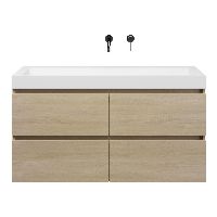 | | Bellanti Elena/Renzo badmeubel 120x46 4 softclose laden eiken licht greeploos polystone wastafel wit zonder kraangaten |
