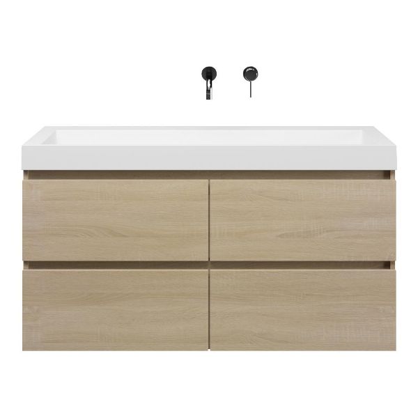 | Bellanti Elena/Renzo badmeubel 120x46 4 softclose laden eiken licht greeploos polystone wastafel wit zonder kraangaten |