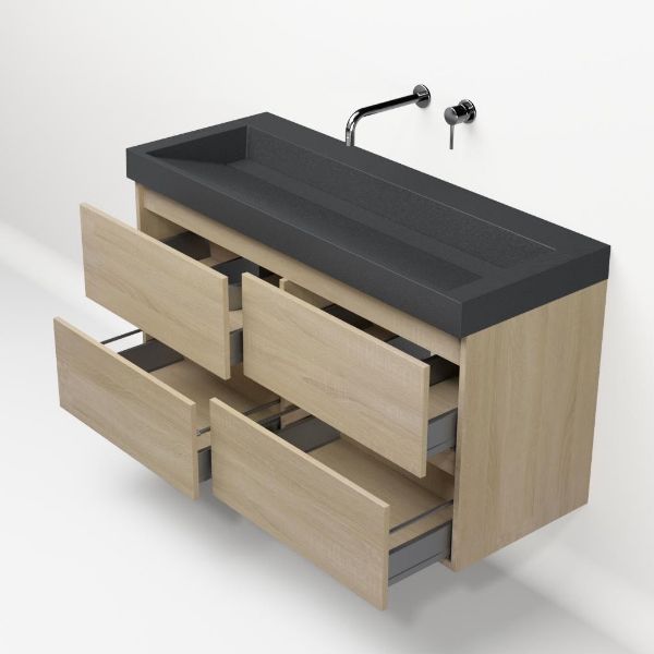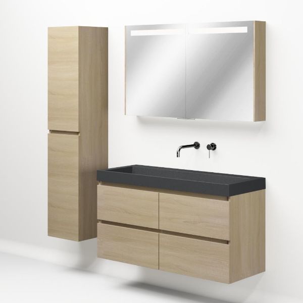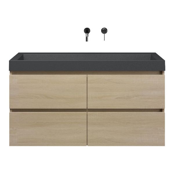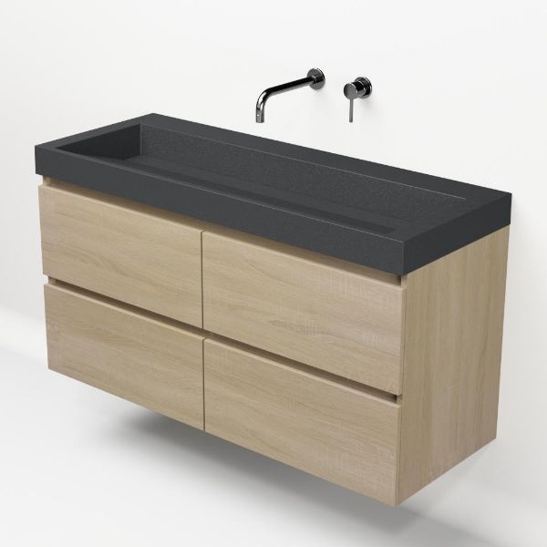 | | Bellanti Elena/Renzo-q badmeubel 120x46 4 softclose laden eiken licht greeploos quartz wastafel mat grijs zonder kraangaten |