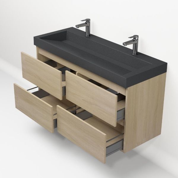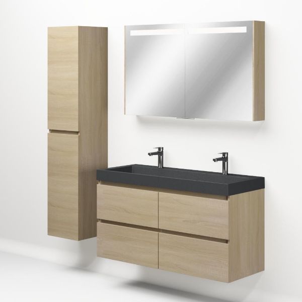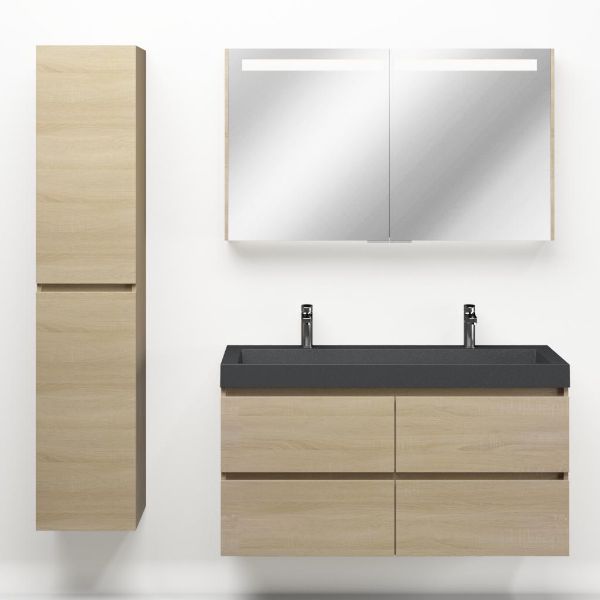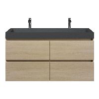 | | Bellanti Elena/Renzo-q badmeubel 120x46 4 softclose laden eiken licht greeploos quartz wastafel mat grijs met 2 kraangaten |