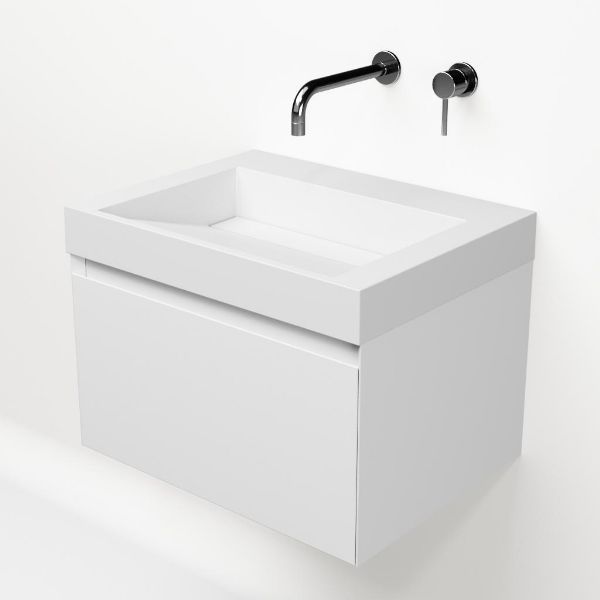 | | Bellanti Solo/Renzo badmeubel 60x46 1 softclose lade wit mat greeploos polystone wastafel wit zonder kraangaten |