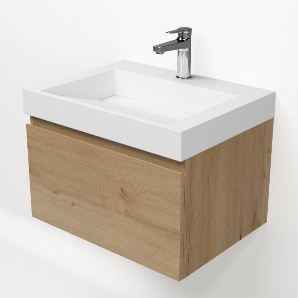 | Bellanti Solo/Renzo badmeubel 60x46 1 softclose lade eiken natuur greeploos polystone wastafel wit met 1 kraangat |