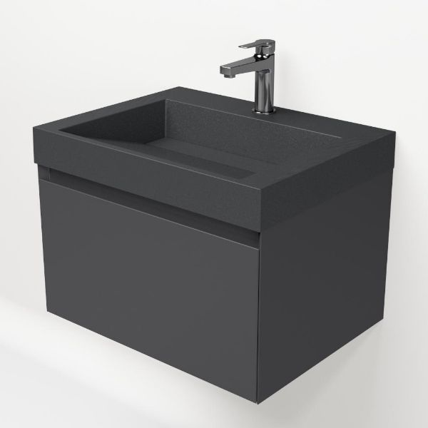 | | Bellanti Solo/Renzo-q badmeubel 60x46 1 softclose lade antraciet mat greeploos quartz wastafel mat grijs met 1 kraangat |