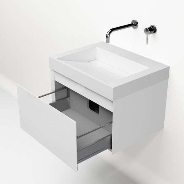| | Bellanti Solo/Renzo-q badmeubel 60x46 1 softclose lade wit hoogglans greeploos quartz wastafel mat wit zonder kraangaten |