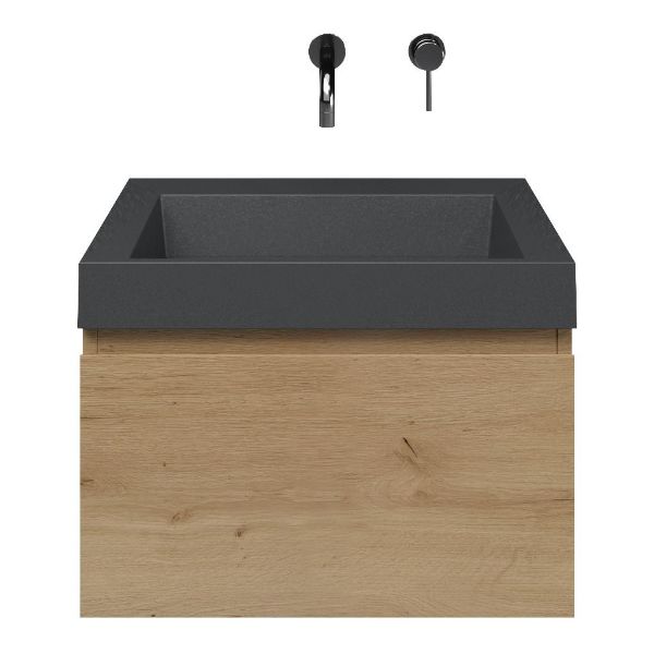 | Bellanti Solo/Renzo-q badmeubel 60x46 1 softclose lade eiken natuur greeploos quartz wastafel mat grijs zonder kraangaten |