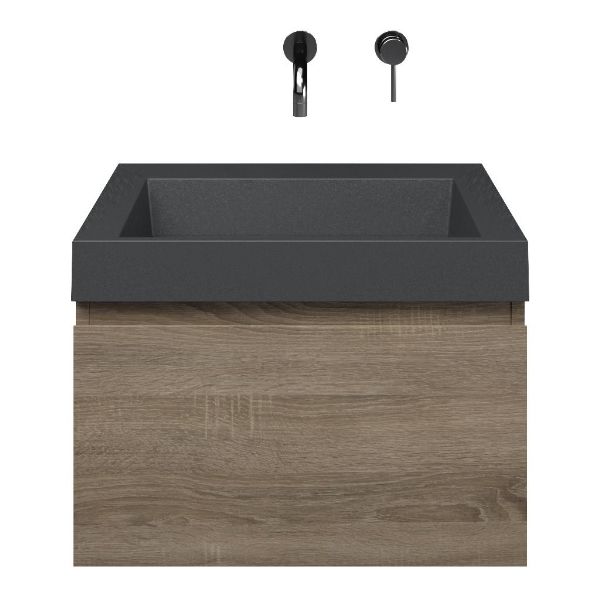 | Bellanti Solo/Renzo-q badmeubel 60x46 1 softclose lade eiken donker greeploos quartz wastafel mat grijs zonder kraangaten |