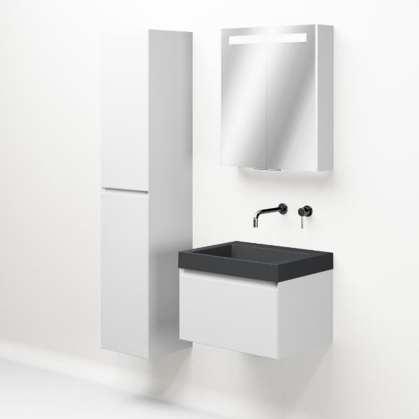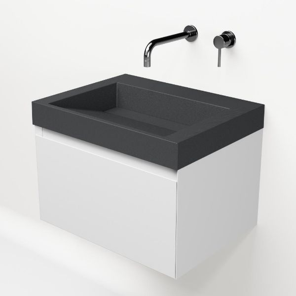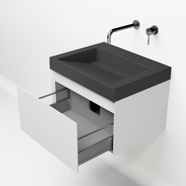 | Bellanti Solo/Renzo-q badmeubel 60x46 1 softclose lade wit mat greeploos quartz wastafel mat grijs zonder kraangaten |