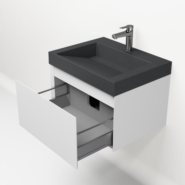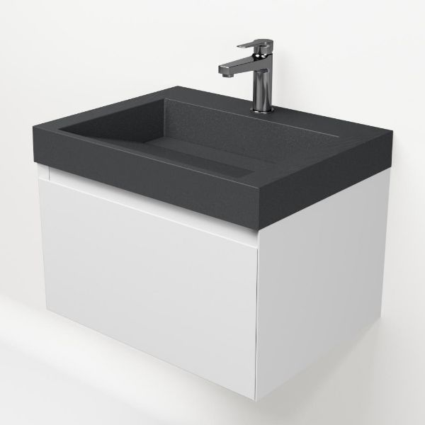 | Bellanti Solo/Renzo-q badmeubel 60x46 1 softclose lade wit mat greeploos quartz wastafel mat grijs met 1 kraangat |