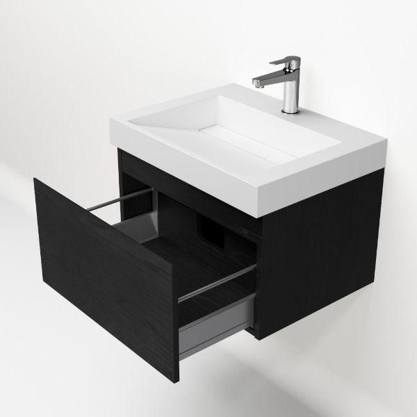 | | Bellanti Solo/Renzo-q badmeubel 60x46 1 softclose lade mat zwart eiken greeploos quartz wastafel mat wit met 1 kraangat |