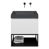 | Bellanti Solo/Tela/Renzo-q badmeubel 60x46 1 softclose lade wit mat greeploos quartz wastafel mat grijs zonder kraangaten met mat zwart metalen frame |