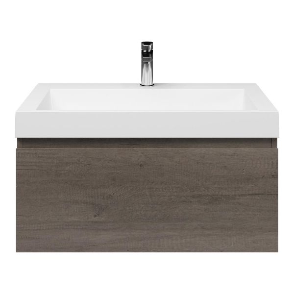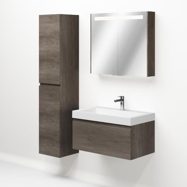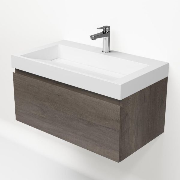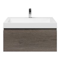 Greeploos badkamermeubel in de kleur olm donker grijs is 80 cm breed. De wastafel is vervaardig in polystone en heeft de kleur wit. Dit badkamermeubel met deze wastafel is leverbaar tussen de 60 cm t/m 160 cm