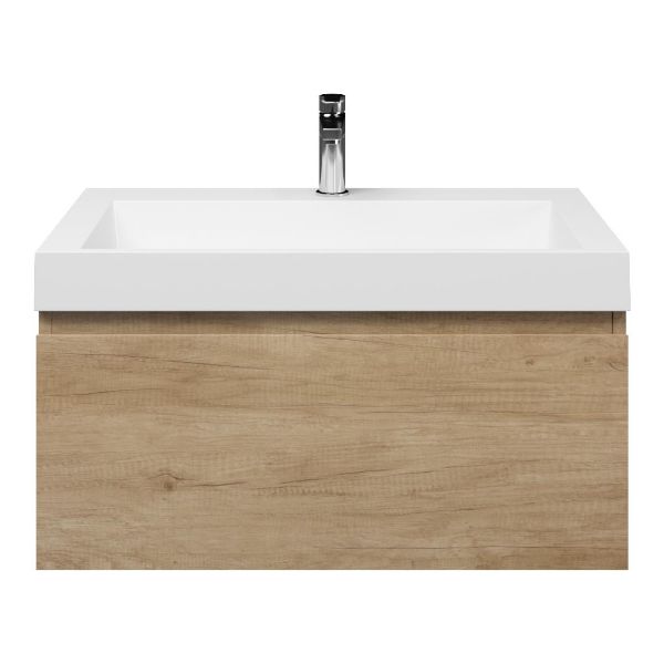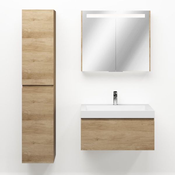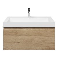 Greeploos badkamermeubel in de kleur olm is 80 cm breed. De wastafel is vervaardig in polystone en heeft de kleur wit. Dit badkamermeubel met deze wastafel is leverbaar tussen de 60 cm t/m 160 cm