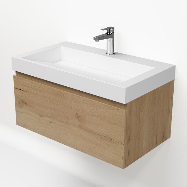 | Bellanti Solo/Renzo-q badmeubel 80x46 1 softclose lade eiken natuur greeploos quartz wastafel mat wit met 1 kraangat |