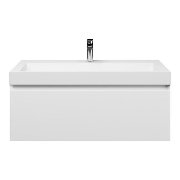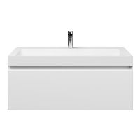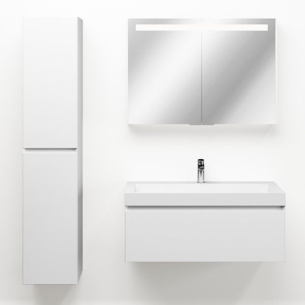 Greeploos badkamermeubel in de kleur wit mat is 100 cm breed. De wastafel is vervaardig in polystone en heeft de kleur wit. Dit badkamermeubel met deze wastafel is leverbaar tussen de 60 cm t/m 160 cm