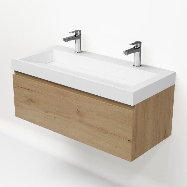 | | Bellanti Solo/Renzo badmeubel 100x46 1 softclose lade eiken natuur greeploos polystone wastafel wit met 2 kraangaten |