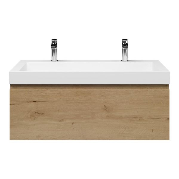 | Bellanti Solo/Renzo badmeubel 100x46 1 softclose lade eiken natuur greeploos polystone wastafel wit met 2 kraangaten |