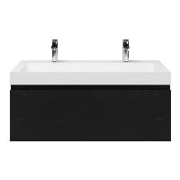 | | Bellanti Solo/Renzo badmeubel 100x46 1 softclose lade mat zwart eiken greeploos polystone wastafel wit met 2 kraangaten |
