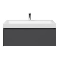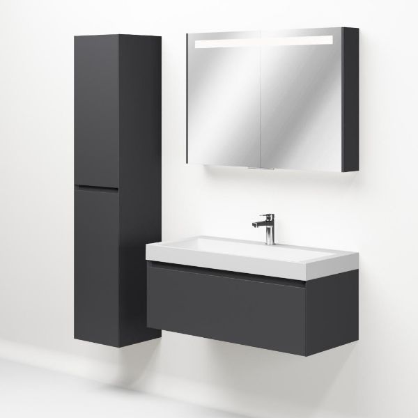 Greeploos badkamermeubel in de kleur antraciet mat is 100 cm breed. De wastafel is vervaardig in quartz en heeft de kleur wit mat keramiek. Dit badkamermeubel met deze wastafel is leverbaar tussen de 60 cm t/m 160 cm