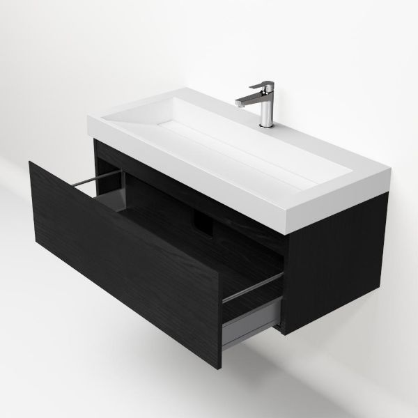 | | Bellanti Solo/Renzo-q badmeubel 100x46 1 softclose lade mat zwart eiken greeploos quartz wastafel mat wit met 1 kraangat |