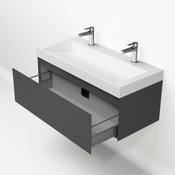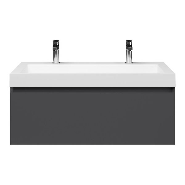 | Bellanti Solo/Renzo-q badmeubel 100x46 1 softclose lade antraciet mat greeploos quartz wastafel mat wit met 2 kraangaten |