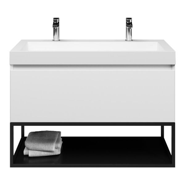 | Bellanti Solo/Tela/Renzo-q badmeubel 100x46 1 softclose lade wit mat greeploos quartz wastafel mat wit met 2 kraangaten met mat zwart metalen frame |