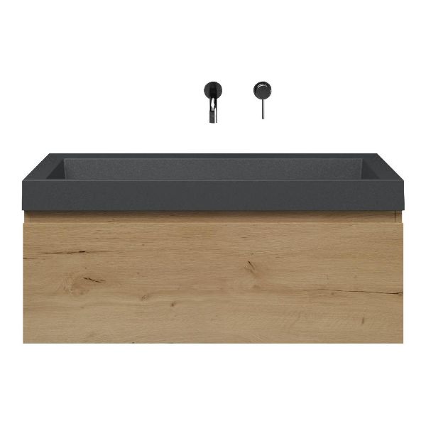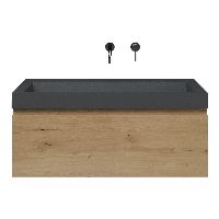 | | Bellanti Solo/Renzo-q badmeubel 100x46 1 softclose lade eiken natuur greeploos quartz wastafel mat grijs zonder kraangaten |