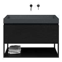 | Bellanti Solo/Tela/Renzo-q badmeubel 100x46 1 softclose lade mat zwart eiken greeploos quartz wastafel mat grijs zonder kraangaten met mat zwart metalen frame |