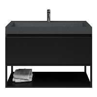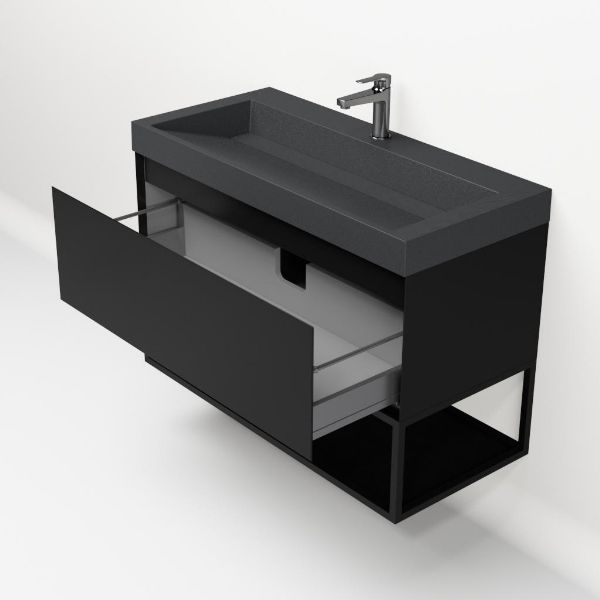 | | Bellanti Solo/Tela/Renzo-q badmeubel 100x46 1 softclose lade zwart mat greeploos quartz wastafel mat grijs met 1 kraangat met mat zwart metalen frame |