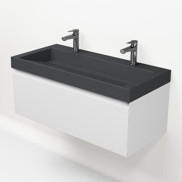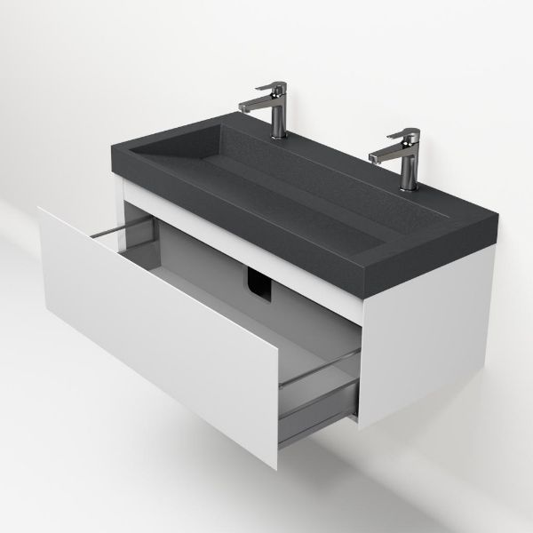 | | Bellanti Solo/Renzo-q badmeubel 100x46 1 softclose lade wit mat greeploos quartz wastafel mat grijs met 2 kraangaten |