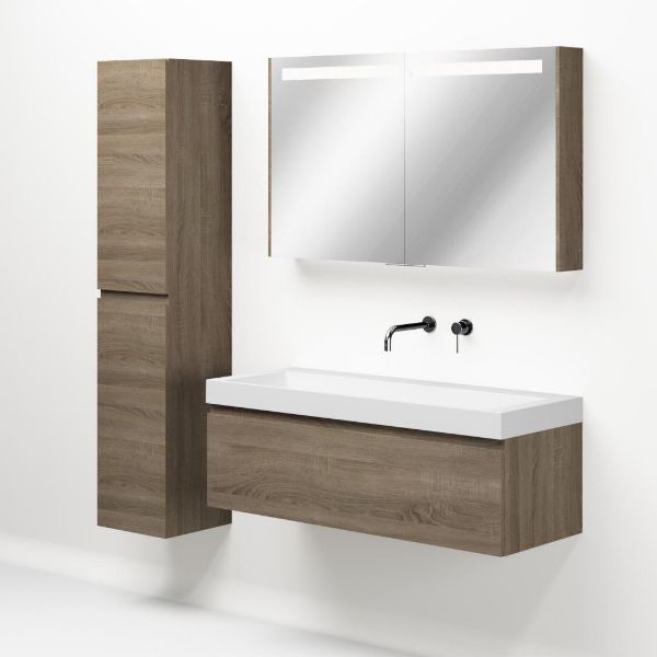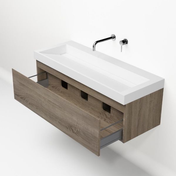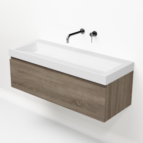 | Bellanti Solo/Renzo badmeubel 120x46 1 softclose lade eiken donker greeploos polystone wastafel wit zonder kraangaten |