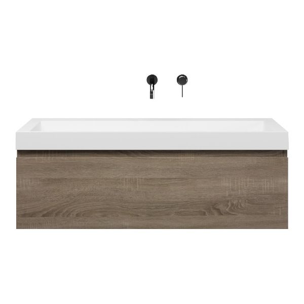 | | Bellanti Solo/Renzo badmeubel 120x46 1 softclose lade eiken donker greeploos polystone wastafel wit zonder kraangaten |