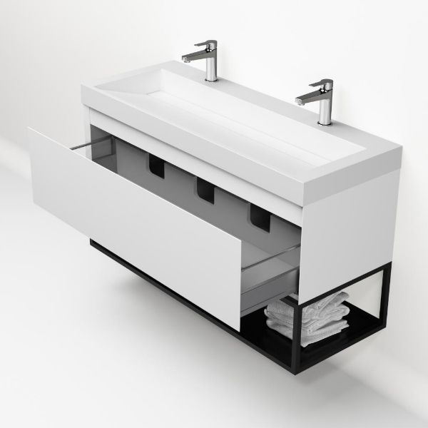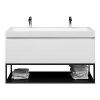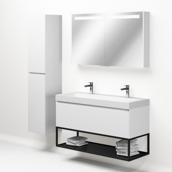 | Bellanti Solo/Tela/Renzo-q badmeubel 120x46 1 softclose lade wit mat greeploos wastafel mat wit met 2 kraangaten met mat zwart metalen frame |