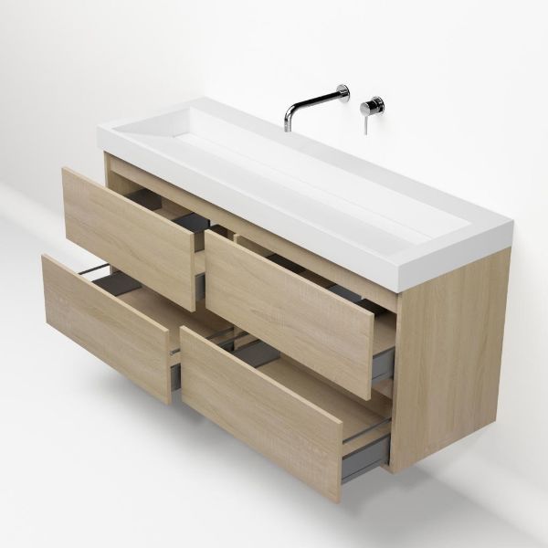 | Bellanti Elena/Renzo badmeubel 140x46 4 softclose laden licht eiken greeploos polystone wastafel wit zonder kraangaten |
