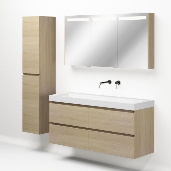 | | Bellanti Elena/Renzo badmeubel 140x46 4 softclose laden licht eiken greeploos polystone wastafel wit zonder kraangaten |