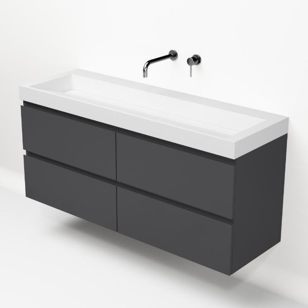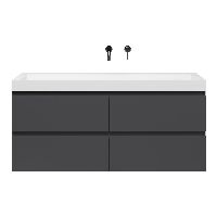 | | Bellanti Gisella/Renzo badmeubel 140x46 4 softclose laden antraciet mat greeploos polystone wastafel wit zonder kraangaten |