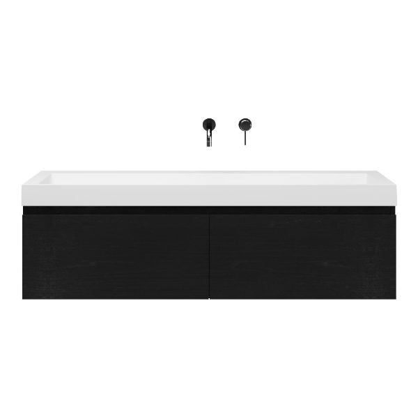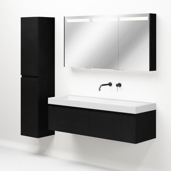 | Bellanti Solo/Renzo badmeubel 140x46 2 softclose laden mat zwart eiken greeploos polystone wastafel wit zonder kraangaten |