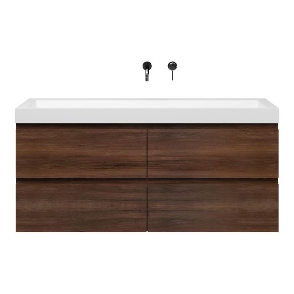 | | Bellanti Gisella/Renzo-q badmeubel 140x46 4 softclose laden walnoot greeploos quartz wastafel mat wit zonder kraangaten |