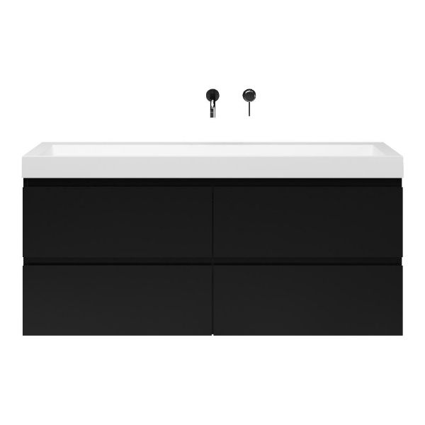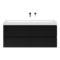 | | Bellanti Gisella/Renzo-q badmeubel 140x46 4 softclose laden zwart mat greeploos quartz wastafel mat wit zonder kraangaten |