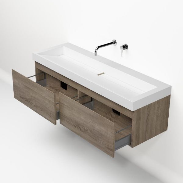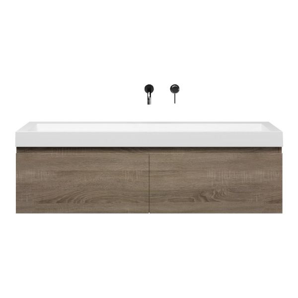 | Bellanti Solo/Renzo-q badmeubel 140x46 2 softclose laden eiken donker greeploos quartz wastafel mat wit zonder kraangaten |