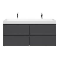 | Bellanti Gisella/Renzo-q badmeubel 140x46 4 softclose laden antraciet mat greeploos wastafel mat wit met 2 kraangaten |